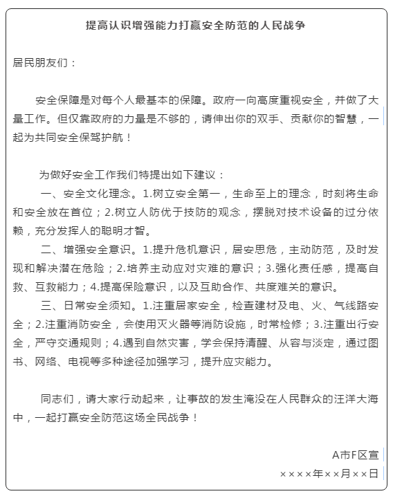 主送機(jī)關(guān)(稱謂)就是宣傳稿的呈送機(jī)關(guān)或者宣傳對(duì)象,通俗的講就是寫給誰(shuí)。如“廣大市民朋友們”“尊敬的家長(zhǎng)朋友們”等。