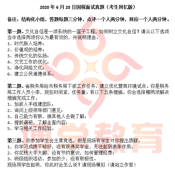 2020國(guó)考面試國(guó)稅崗位面試形式變動(dòng):
