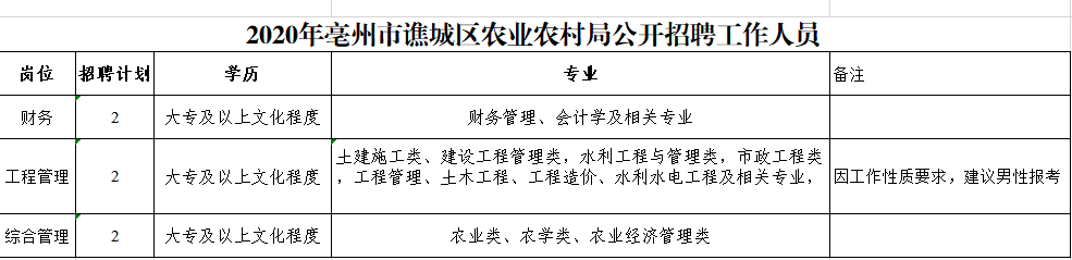 2020年亳州市譙城區(qū)農(nóng)業(yè)農(nóng)村局公開(kāi)招聘工作人員公告