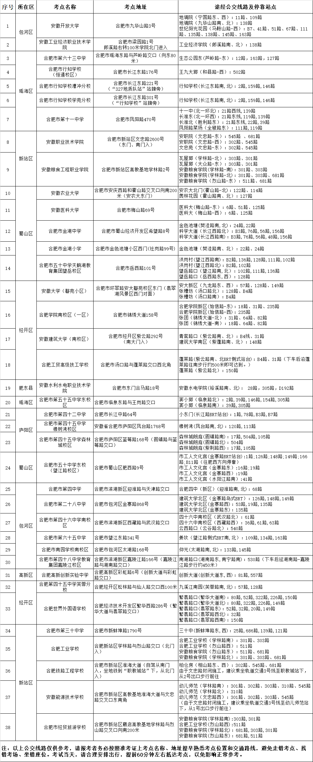 2022年國考安徽考區(qū)具體考點