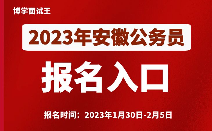 2023安徽公務(wù)員考試公告于1月18日發(fā)布,共招錄7256人。本次報(bào)名采取網(wǎng)上報(bào)名的方式進(jìn)行(涉密等特殊職位除外)。報(bào)名時(shí)間為2023年1月30日9:00至2月5日23:00。報(bào)名網(wǎng)站為安徽省人事考試網(wǎng)(www.apta.gov.cn)。安徽博學(xué)教育為各位考生帶來安徽公務(wù)員考試報(bào)名入口,方便大家進(jìn)入。