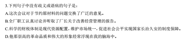 答案:C。解析:A項,狀語和定語次序錯位,應(yīng)改為廣泛地交換了意見。B項,語序不當(dāng),應(yīng)改為全廠職工認(rèn)真聽取并討論了廠長的報告。D項,品質(zhì)是抽象概念,是不能浮現(xiàn)在腦海中的,不合邏輯。故這道題選C。