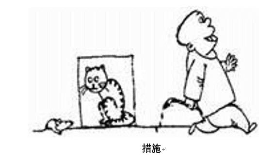 4、漫畫(huà)題 地上有一只老鼠,有一個(gè)人在墻上畫(huà)了一只貓,旁邊寫(xiě)著“措施”,然后這個(gè)人就走了。談?wù)勀愕目捶ā?/span>