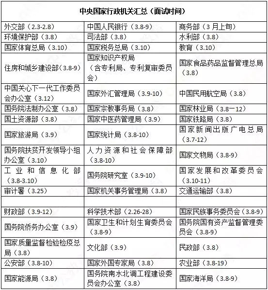 從上表可以看出,國考安徽的崗位面試時間集中在3月份,外交部面試時間為2月份,今年2月初是新年,受此影響,即使今年比去年筆試時間更早,但預計面試時間預計和去年差不多。