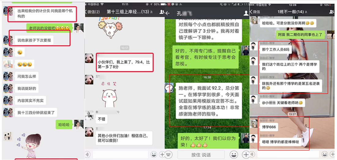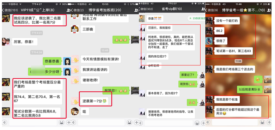 在2010年—2018年國考中,很多人僅僅是因?yàn)榭戳司W(wǎng)上博學(xué)教育公務(wù)員班的幾段視頻,就毫不猶豫地選擇博學(xué)教育,最終成功地實(shí)現(xiàn)了他們的公務(wù)員之夢。2010年安徽省考高陽同學(xué)面試取得88.4的高分,一舉從筆試第23名躍居為綜合排名第一名,成為巢湖市面試狀元;胡卓然同學(xué)以86分的成績勇奪南京市第一名,被南京市國土資源局錄取。廣東的鄭滋潤同學(xué),數(shù)次公考面試失敗,2011年慕名來到博學(xué)施老師門下,經(jīng)過七天學(xué)習(xí),脫胎換骨,以91分的成績遙遙領(lǐng)先對手被財政部駐深圳市專員辦錄?。?011年安徽省考季毓同學(xué)面試取得88的高分,成為馬鞍市面試狀元;2012年上海的潘安安同學(xué),以88.3的高分被上海海關(guān)隸屬海關(guān)通關(guān)業(yè)務(wù)部門錄取。2013年福建的王子熙同學(xué),以89.4的高分被廈門海關(guān)廈門地區(qū)隸屬海關(guān)或辦事處錄取。2013年安徽省考牛園園同學(xué)取得面試86.8分,成為亳州市面試狀元!2014年安徽的曹珍同學(xué),以86.8的成績勇奪安徽省直面試狀元,被安徽省女子監(jiān)獄錄取。2015年國考安徽的曹燦同學(xué),以92.25分的成績被中國銀行業(yè)監(jiān)督管理委員會安徽監(jiān)管局錄?。?015年安徽省考陳雯同學(xué)以面試87.2的高分勇奪蕪湖市面試狀元;趙錦同學(xué)以面試86.4的高分取得天長市面試狀元;查菁文同學(xué)以面試86的高分取得定遠(yuǎn)縣面試狀元。2016年國考面試,張雨豪以91分的成績被甘肅省國家稅務(wù)局錄取。2016年安徽省考陳蓉同學(xué)以面試86.8分取得馬鞍山市非鄉(xiāng)鎮(zhèn)公務(wù)員面試狀元;2017年國考,劉大偉勇奪山東省面試狀元,以98.67分被商務(wù)部錄??;阮帆同學(xué)面試取得91.33分,上海市國稅錄取;鄭想同學(xué)面試取得90.3分,上海國稅錄;2017年安徽省考顧博賢同學(xué)以面試88分取得利辛縣非鄉(xiāng)鎮(zhèn)公務(wù)員面試狀元。2018年國考徐起以87.33分被中央國家機(jī)關(guān)工委錄取,夏鈺以88.33分被中國浦東干部學(xué)院錄取。2018年安徽省考,周陽以83.8分取得銅陵市鄉(xiāng)鎮(zhèn)層級面試狀元;魏宇以82.8分取得亳州市鄉(xiāng)鎮(zhèn)層級面試狀元!