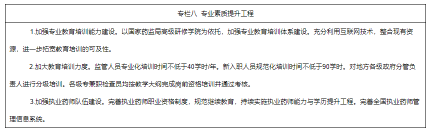 專業(yè)人才隊(duì)伍建設(shè)取得較大進(jìn)展。培養(yǎng)一批具備國(guó)際先進(jìn)水平的高層次審評(píng)員、檢查員和檢驗(yàn)檢測(cè)領(lǐng)域?qū)I(yè)素質(zhì)過硬的學(xué)科帶頭人。藥品監(jiān)管隊(duì)伍專業(yè)素質(zhì)明顯提升,隊(duì)伍專業(yè)化建設(shè)取得積極成效。